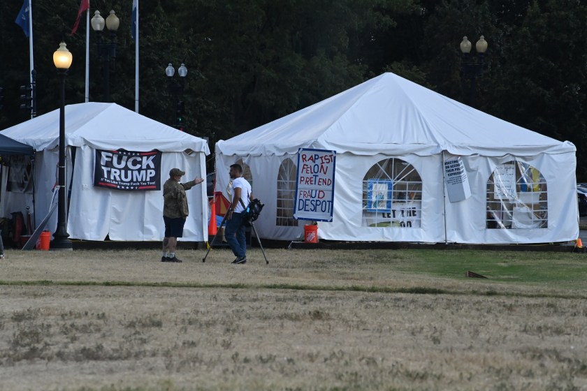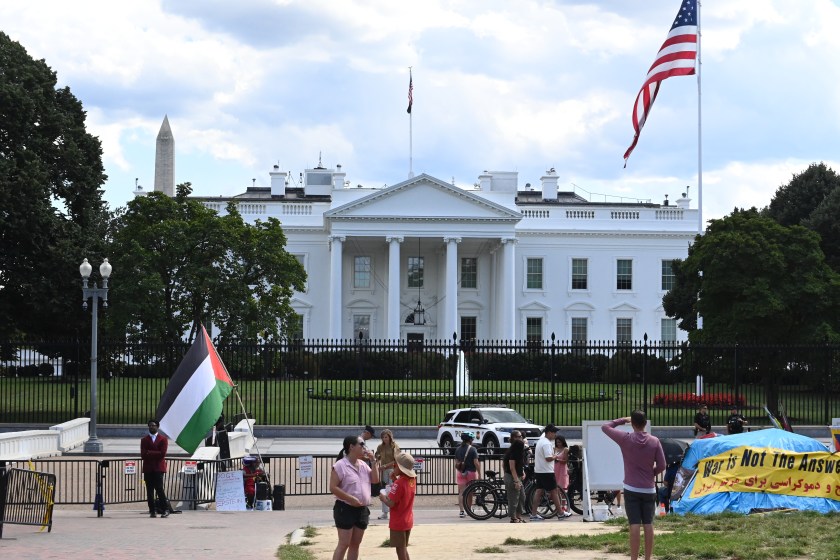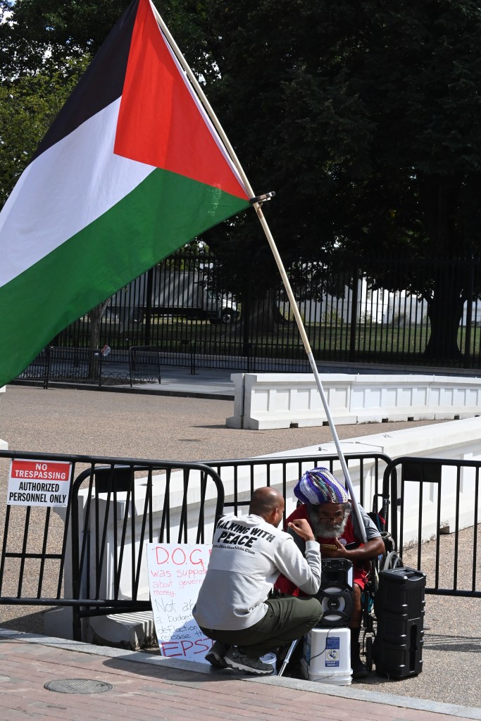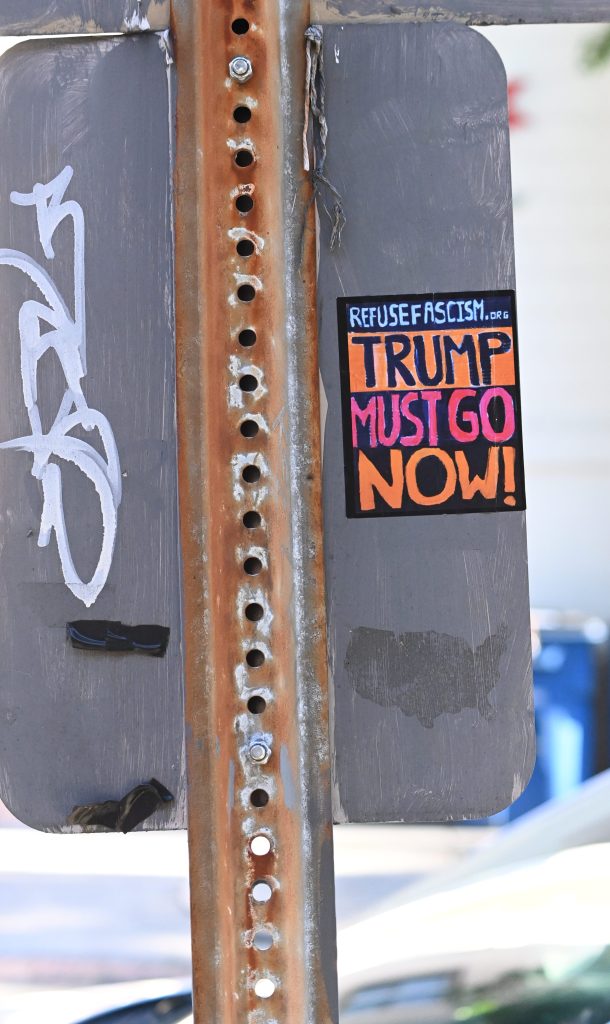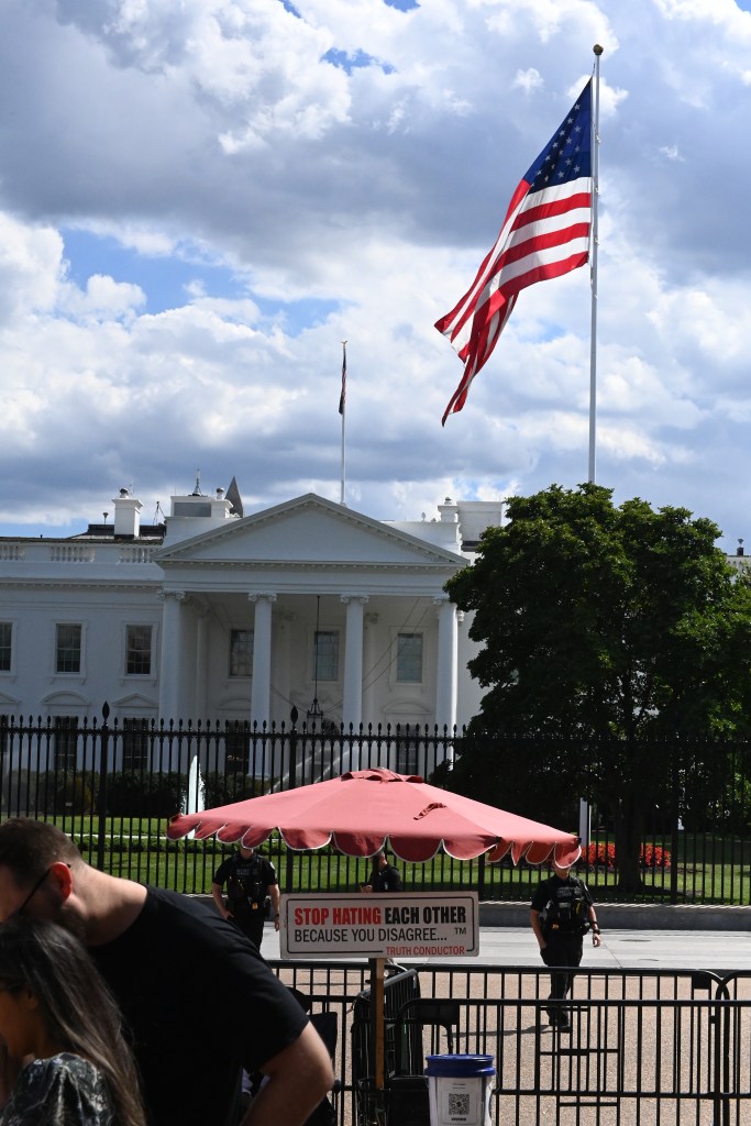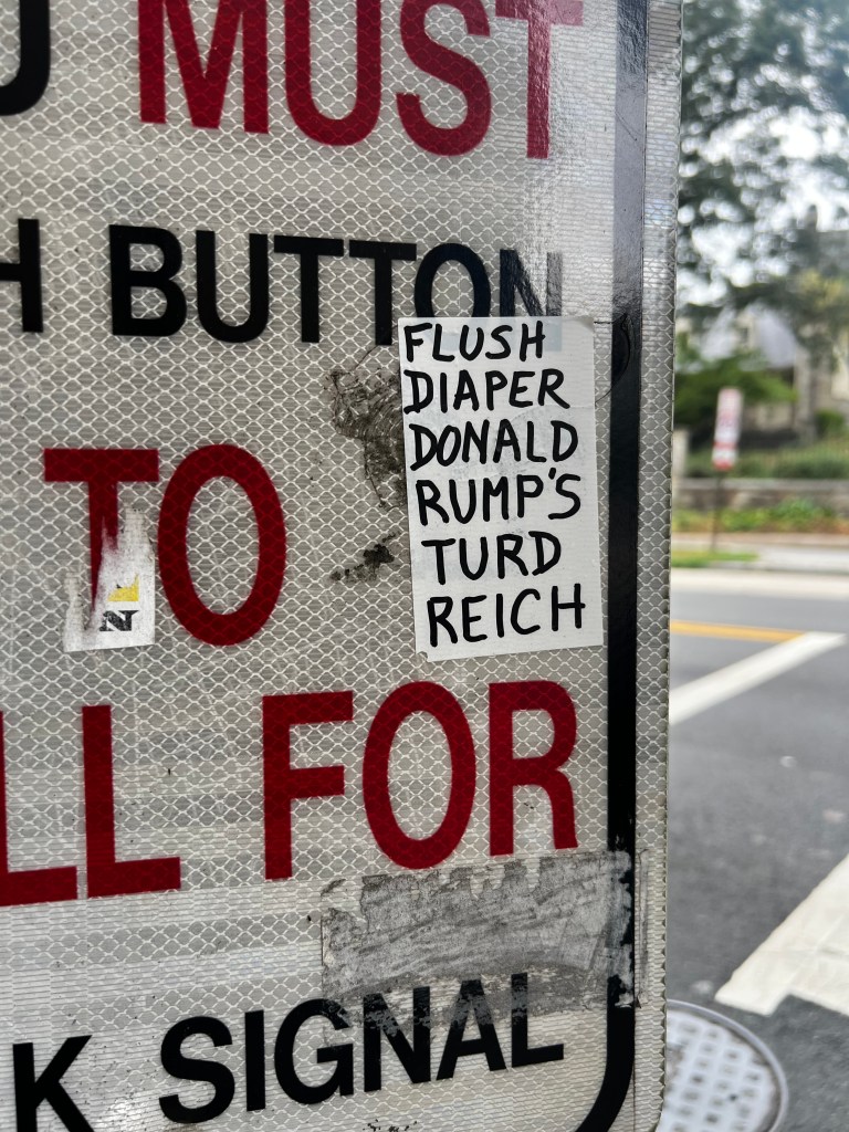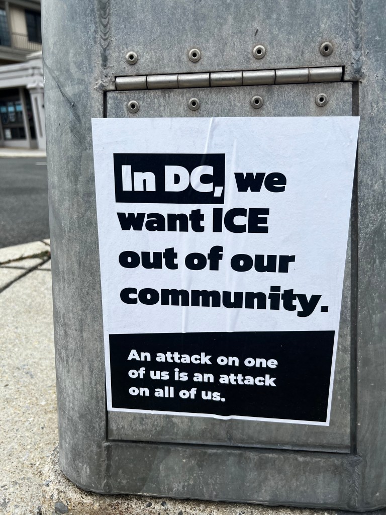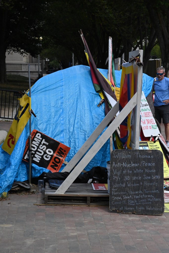 Part of a protest encampment outside Union Station in Washington, D.C., seen on Tuesday, Aug. 26, 2025.A protester in front of Union Station in Washington, D.C., on Thursday, Aug. 21, 2025, demands the elimination of U.S. Immigration and Customs Enforcement. The D.C. region’s Metrorail and the intercity rail service Amtrak are among the bus and rail services using Union Station. President Trump has sent National Guard troops to Union Station as part of what he has called a crackdown on crime in the nation’s capital. On Aug. 27, Transportation Secretary Sean Duffy announced that the federal government was taking control of the management of Union Station from the nonprofit Union Station Redevelopment Corp.A protest encampment outside Union Station, a major transportation hub in Washington, D.C., on Thursday, Aug. 21, 2025.A denunciation of President Donald Trump’s federal intervention in the local governance of Washington, D.C., hangs from a balcony at an apartment building in downtown Washington, D.C, on Tuesday, Aug. 26, 2025. The north side of the White House in Washington, D.C., on Tuesday, Aug. 26, 2025. Visible in the picture are the two towering flagpoles that President Donald Trump had erected on the White House grounds on June 18, 2025, one on the North Lawn (foreground), the other on the South Lawn, on the Ellipse side of the mansion.A sign at a permanent protest post maintained in the pedestrian plaza on the north side of the White House in Washington, D.C., as seen on Tuesday, Aug. 26, 2025. A view of a permanent protest post outside the White House on Tuesday, Aug. 26, 2025.In Lafayette Square, just north of the White House, on Tuesday, Aug. 26, 2025.Outside the White House on Tuesday, Aug. 26, 2025.Outside the White House on Tuesday, Aug. 26, 2025.In Lafayette Square, just north of the White House, on Tuesday, Aug. 26, 2025.Seen outside the White House on Tuesday, Aug. 26, 2025.An anti-Trump sticker on a street sign in the Dupont Circle neighborhood of Washington, D.C., on Friday, Aug. 22, 2025.Large street display near Dupont Circle in Northwest Washington in 2025 before Donald Trump and Elon Musk fell out.An anti-Trump sticker seen in Northwest Washington on March 9, 2018.